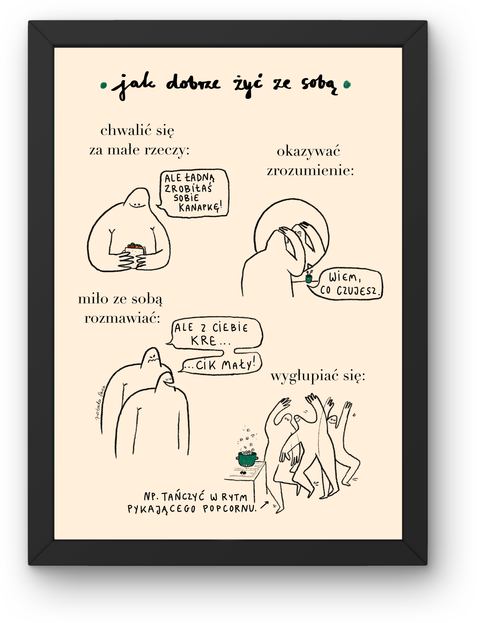 SKU: Brak danych Kategoria: Plakaty Znaczników: dobre życie, glowna, hop, miłość, osiędbanie, pochwała, potatoface, prezent, rysunek, stres, terapia, up, zdrowie, zdrowie psychiczne, zrozumienie